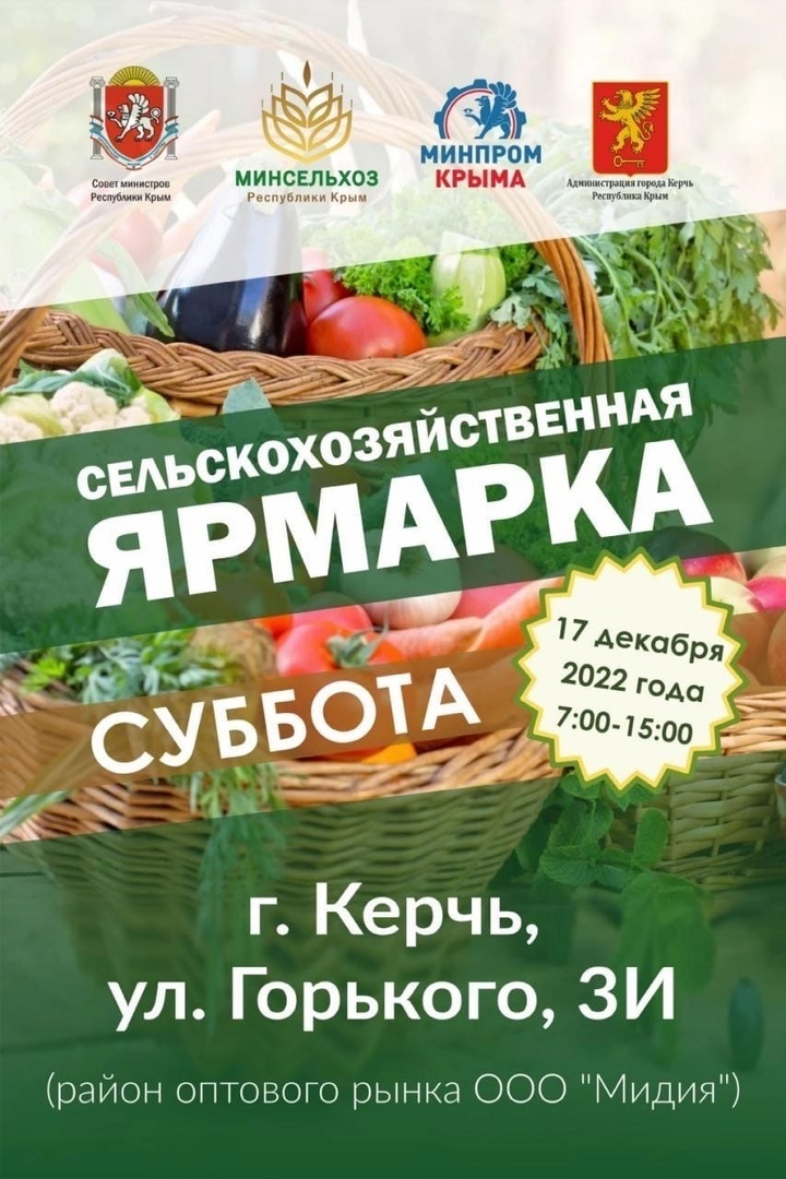 В Керчи 17 декабря пройдёт специализированная сельскохозяйственная ярмарка. Об этом сообщает пресс-служба администрации Керчи, - передает Керчь.ФМ.