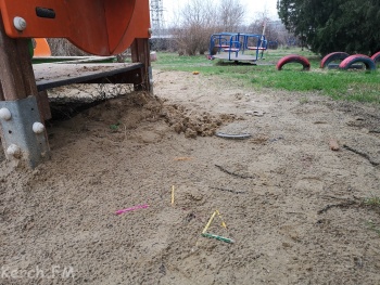 Когда на терсовете сказали про детскую и спортивную площадку в районе Вокзального шоссе, 51, представлялось пространство со старыми качелями и турниками. Но чтобы канава по соседству с песочницей и кусок бетона как крепление для инвентаря в луже грязи.. Все для детей. Внутри двора не лучше. Оказывается, туда даже таксисты не ездят, - передает Керчь.ФМ.