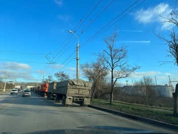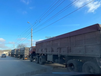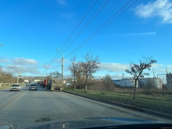В Керчи с утра 20 декабря на Камыш-Бурунском шоссе занята одна полоса для движения - очередь из грузовиков заняла часть дороги в сторону центра, - передает Керчь.ФМ.