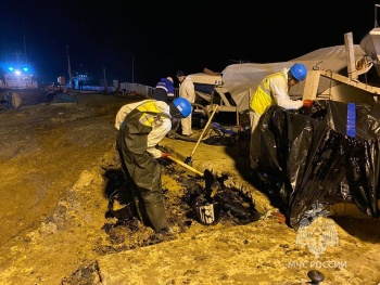На место прибыла бригада аварийно-спасательная служба «Экоспас». Работы вели в течение ночи. К 06.00 утра акваторию моря полностью очистили.