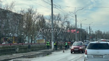 Но, керчане говорят, что работа сложная и немного бесполезная - на обочинах стоят глубокие лужи и в этом месте постоянно собираются кучи грязи