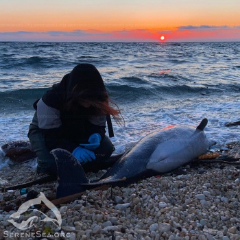 «После мы также выехали в пгт. Николаевка, откуда поступил звонок об афалине на берегу. Это оказался очень массивный, взрослый самец с изношенными зубами (большинство стерто почти «под ноль!»). Повреждения отсутствовали. Принимая во внимание размеры тела и состояние зубов (а значит, и потенциальный возраст) можно предположить, что гибели послужила болезнь. Вчера мы обследовали ещё одну афалину, найденную на пляже Омега в Севастополе. Это был взрослый самец в хорошей кондиции. Обратило на себя внимание уже старое и давно зажившее ранение на его животе, которое проходило глубоко в подкожный жировой слой. Ему повезло, что компенсаторных сил организма хватило на заживление такой обширной раны. К дельфинам из дельфинария обе афалины не относились, чипы обнаружены не были. Результаты осмотра мы передали надзорным структурам», - говорится в сообщении.