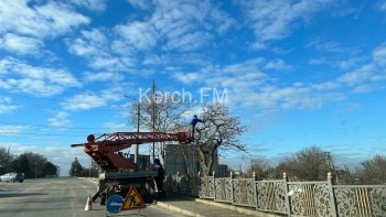 В Керчи 10 января на улице Чкалова пилят ветки деревьев вдоль дороги. Перед светофором рабочие заняли часть дороги. Также аналогичные работы проводят на улице Годыны и Вокзальном шоссе - передает Керчь.ФМ.