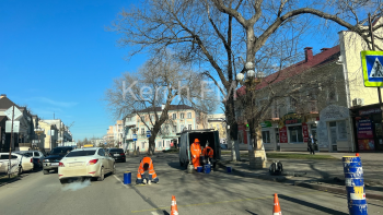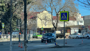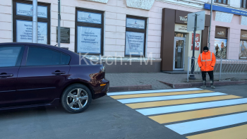 В Керчи продолжают наносить разметку " пешеходный переход"