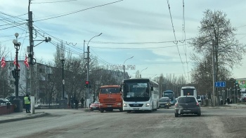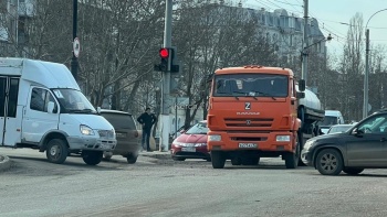 В Керчи днем 12 января, на перекрестке Еременко-Мирошника произошла авария. Здесь не поделили дорогу КАМАЗ и «Хонда», - передает Керчь.ФМ.