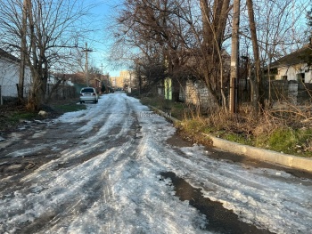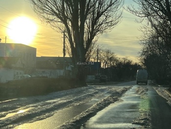 В Керчи в нескольких местах дорога по улице Колхозной заледенела. Где-то каток, где-то снежное месиво - все из-за порывов водовода на прилегающих улицах, - передает Керчь.ФМ.