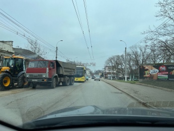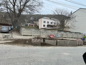 В Керчи на улице Свердлова продолжаются активные работы по замене магистрального водовода. В последние дни работы здесь идут боле активно, постоянно работает тяжёлая техника, появились новые места проколов, - передает Керчь.ФМ. Из-за техники в некоторых местах перекрывают одну полосу для движения.