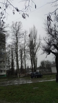 В редакцию Керчь.ФМ постоянные читатели прислали фотографии рабочих, которые принялись к обрезке аварийных деревьев в районе домов по Орджоникидзе, 118.