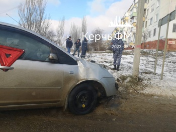 Весь дублер дороги по Буденного залит водой, которая из-за мороза превратилась в каток, местами в ледяную скользкую кашу. Перекресток Блюхера-дублер Буденного сплошное месиво. Что стало причиной утреннего ДТП будут выяснять правоохранители и страховщики, но вряд ли заинтересованные упустят этот факт, а, возможно, обратят внимание и на колеса поврежденного автомобиля, - передает Керчь.ФМ.