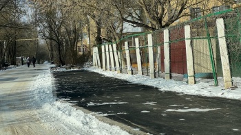 Около школы, вдоль дороги, установили новые ограждения и дородные знаки, предупреждающие о пешеходном переходе. На 9 февраля работы на улице не проводились, не было ни техники, ни рабочих.