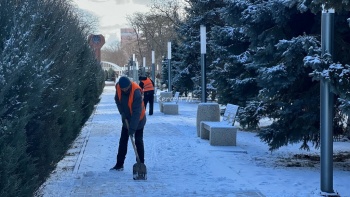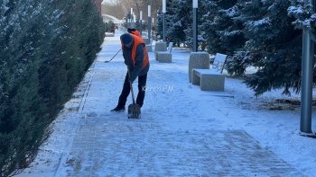 В Керчи 16 февраля с утра коммунальщики приступили к очистке от снега пешеходных зон. Так, рабочие чистили тротуары в Комсомольском парке, - передает Керчь.ФМ.