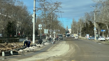 В Керчи продолжается ремонт дорог. Так, на улице Маршала Еременко укладывают новые бордюры. К работам по формированию новых пешеходных дорожек еще не приступили, как и к асфальтированию дорожного полотна. Частично одну полосы дороги перекрывают рабочие, знаки предупреждающие они устанавливают, - передает Керчь.ФМ.