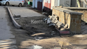 В редакцию Керчь.ФМ обратились постоянные читатели с жалобой на состояние тротуара на улице Театральной. В конце прошлого года плитку с тротуара демонтировали для проведения работ и до сих пор ее не вернули.