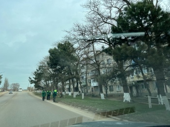 В Керчи с утра 27 февраля в разных районах города работают все коммунальщики, которые, видимо, только есть в городе. Так, активные работы идут на обочинах и зеленой зоне в районе «Института». Также на Верхнем Солнечном техника и рабочие вывозят ветки и наводят порядок на обочинах .
