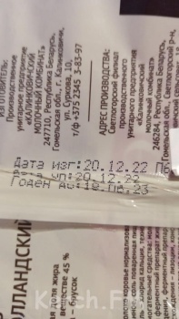 Керчанка купила в Доброцене лакомство. Правда от такого лакомства можно залететь в больницу, и не всегда выходят оттуда живыми. На этот раз это был сыр «Голандский» в упаковке торговой марки «Рогачев» из Беларусии. Женщина рассказала журналисту Керчь.ФМ о том, что всегда смотрит срок годности. У этого сыра он аж до 19 июня 2023 года.