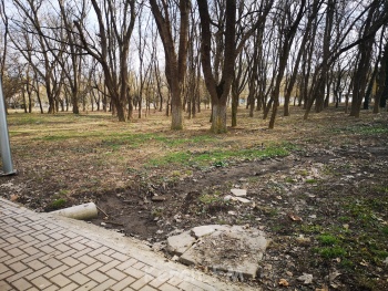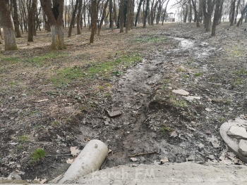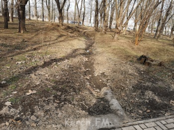 Когда там все заросло кустами и порослью, такого ноу-хау не было видно. Но в городе тотальная зачистка на видных улицах произошла, и вот те нате. Вместо того, чтобы трубы починить, ливневки сделать, в Керчи принято все это в парк выливать.