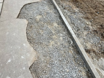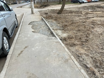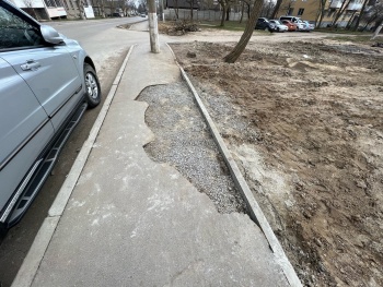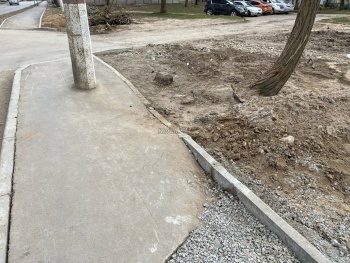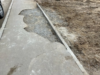 Спустя время яму подсыпали щебнем и вернули бордюр. Но восстанавливать никто ничего не собирается. И так сойдет.