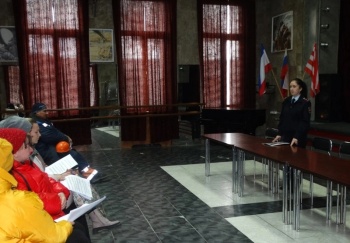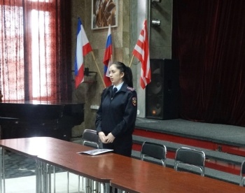 В начале беседы старший специалист отделения кадров отдела по работе с личным составом УМВД капитан полиции Яна Кашкевич акцентировала внимание присутствующих на том, что задача кадрового подразделения полиции г. Керчи - познакомить горожан со службой в органах внутренних дел, рассказать о возможности обучения выпускников образовательных организаций города в ВУЗах системы МВД России.