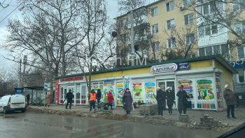 В Керчи на улице Еременко перед светофором перекрыли частично одну полосу дороги. Это связано с тем, что рабочие на проезжую часть выложили бордюры, - передает Керчь.ФМ.