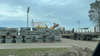 Автомобильную парковку около стадиона 50-летия Октября заняли бордюрами
