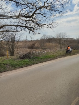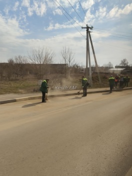 В Керчи с утра 9 марта от кольца на Орджоникидзе в сторону «Заливовского» кольца идут работы на обочинах дорог. Бригада дворников в спецжилетах чистит грязь с обочин.