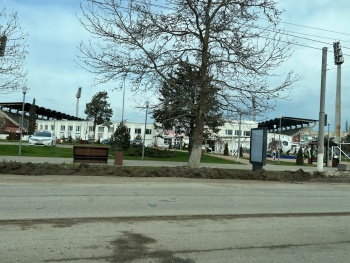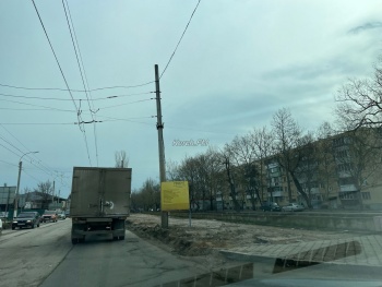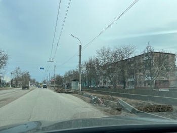 Напомним, перед светофором на ул. Еременко перекрыли частично одну полосу дороги. Бордюры на Еременко оставили посреди дороги. Автомобильную парковку около стадиона 50-летия Октября заняли бордюрами