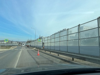 По ШГС работают осужденные, из-за работ часть дороги обозначили сигнальными конусами.