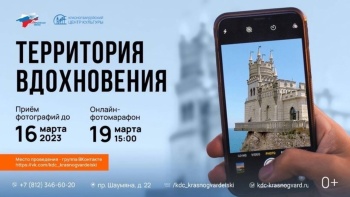 Красногвардейский центр культуры (г. Санкт-Петербург) совместно с Фондом развития культуры «Эфес» в рамках Всероссийского фестиваля «Крымская весна» приглашают профессионалов и любителей принять участие в фотомарафоне «ТЕРРИТОРИЯ ВДОХНОВЕНИЯ». Об этом сообщает Городской Центр культуры и досуга г. Керчь, - передает Керчь.ФМ.