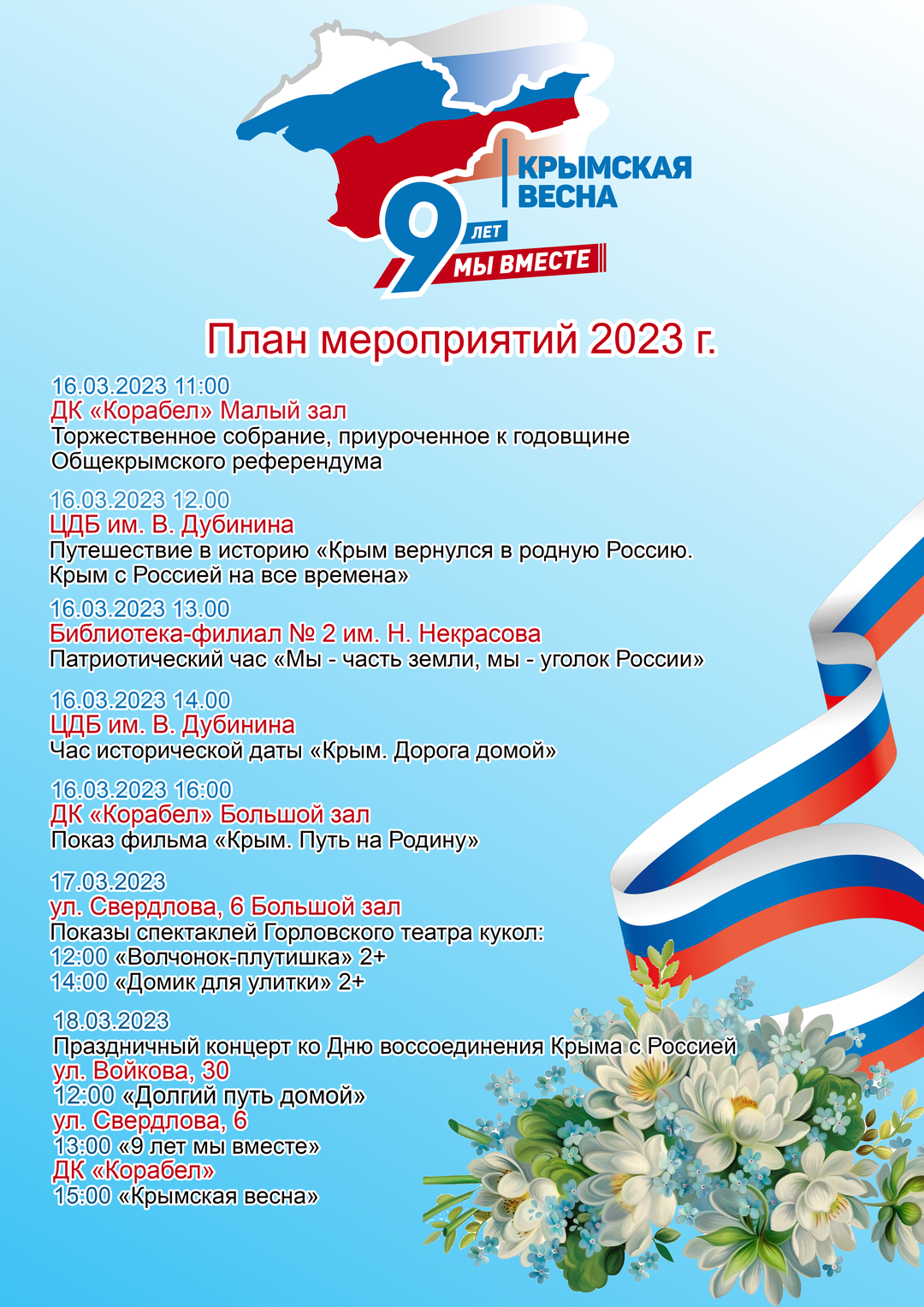 16 марта в 11-00 в Малом зале ДК «Корабел» состоится торжественное собрание, посвященное годовщине Общекрымского референдума.