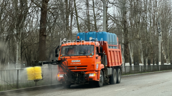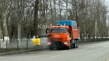 В Керчи вовсю работает коммунальная техника, которая моет ограждения и проезжую часть, - передает Керчь.ФМ