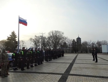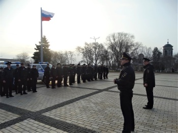 Так, 18 марта на центральной площади города-героя начальник Управления МВД России по г. Керчи подполковник полиции Юрий Маринцов совместно с заместителем начальника полиции по охране общественного порядка подполковником полиции Дмитрием Гудовым провели общий инструктаж сил и средств, задействованных в охране общественного порядка и обеспечении общественной безопасности на улицах и в иных общественных места. В инструктаже также приняли участие следственно-оперативная группа и заступающая смена дежурной части.