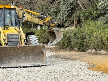 На днях на участке появилась тяжелая техника, которая досыпает и ровняет щебень.