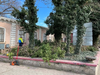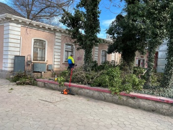 В Керчи на улице Театральной приступили к обрезке деревьев. Так, рабочие пилят ветки деревьев и сразу погружают их в контейнеры, которые привезли и поставили рядом, - передает Керчь.ФМ.