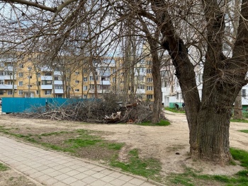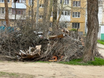 В Керчи у дома по Орджоникидзе, 118, за контейнерной площадкой образовалась свалка из сухих веток, которая не первый день находится в это месте. Свалка уже выше человеческого роста, а в длину - несколько метров, - передает Керчь.ФМ.