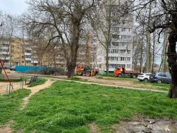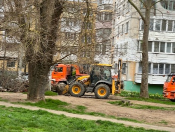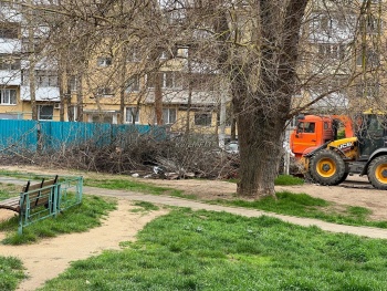 В Керчи у домов по Орджоникидзе наконец приступили к вывозу свалки веток. Для этого пригнали трактор и целых три грузовика, чтобы вывезти свалку, - передает  Керчь.ФМ.