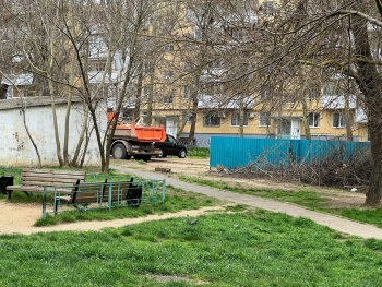 Три грузовика понадобилось, чтобы вывезти свалку веток у жилых домов
