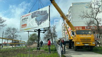 В Керчи 10 апреля на улице Ворошилова демонтировали билборд, расположенный на газоне около дороги. Рабочие с помощью спецтехники убрали всю конструкцию, - передает Керчь.ФМ.
