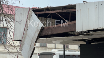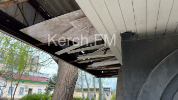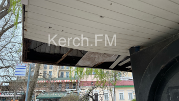 Как сообщают очевидцы в редакцию сайта Керчь.ФМ, пластик на крыше свисает и может в любой момент обрушиться на ожидающих свой транспорт керчан и гостей города. Могут пострадать люди.