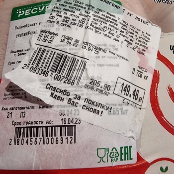 В редакцию  Керчь.ФМ обратилась керчанка, которая купила в магазине мясо птицы, где на упаковке указан один вес и срок годности, а на наклейке магазина увеличился и вес, и срок.