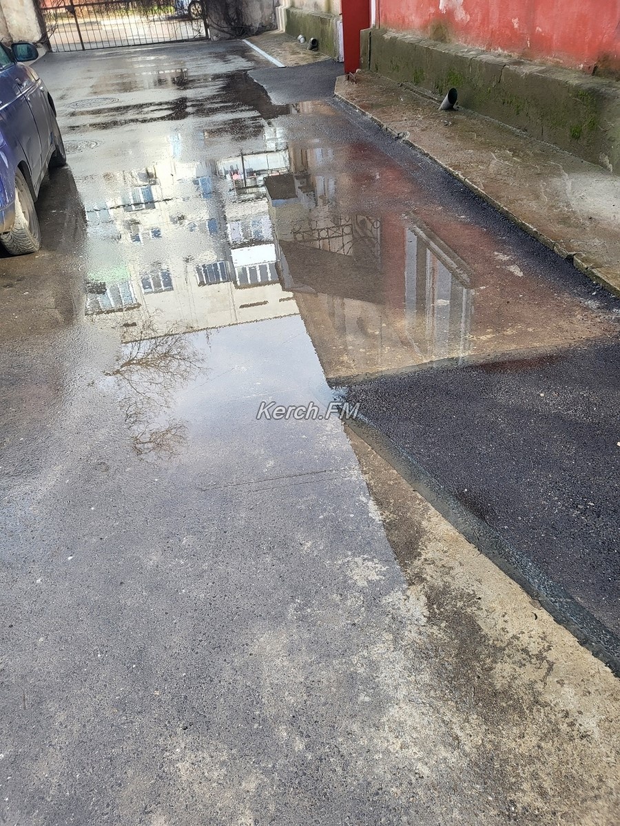 В редакцию  Керчь.ФМ обратились жителе двора по переулку 2 Портовый, где также, как и на Ульяновых собирается вода на новом асфальте при каждом дожде.