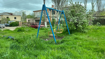 «Детской площадкой - это конечно трудно назвать, но траву покосить нужно! Клещи уже проснулись и трава по пояс. Понятно, что больница рядом, но не хотелось бы в нее детей возить!», - написала керчанка.