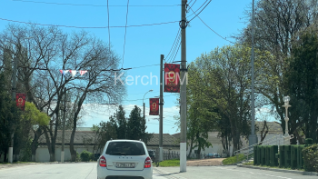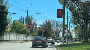 В центре Керчи повесили растяжки ко Дню Победы