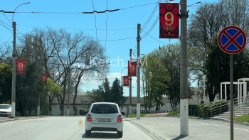 В Керчи вдоль дороги на Адмиралтейском проезде появились растяжки ко Дню Победы. На красном фоне - большая надпись 9 мая. Их развесили на опоры освещения, - передает Керчь.ФМ.
