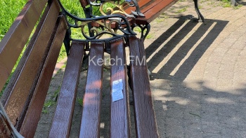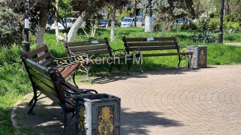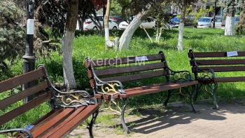 В Керчи 3 мая в сквере Дубинина красили скамейки. На каждую лавочку наклеили бумажку с надписью «Окрашено», - передает  Керчь.ФМ.