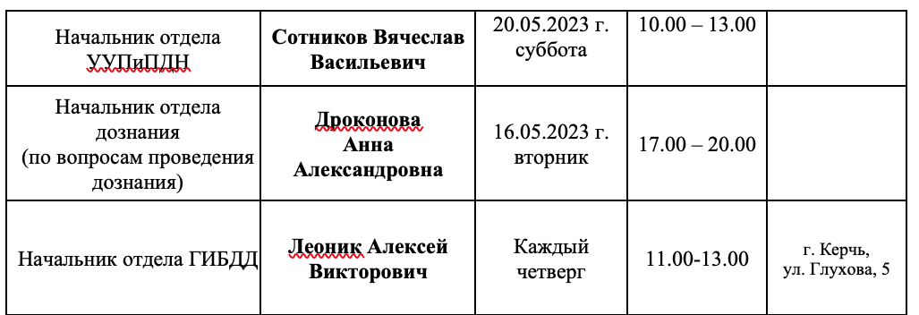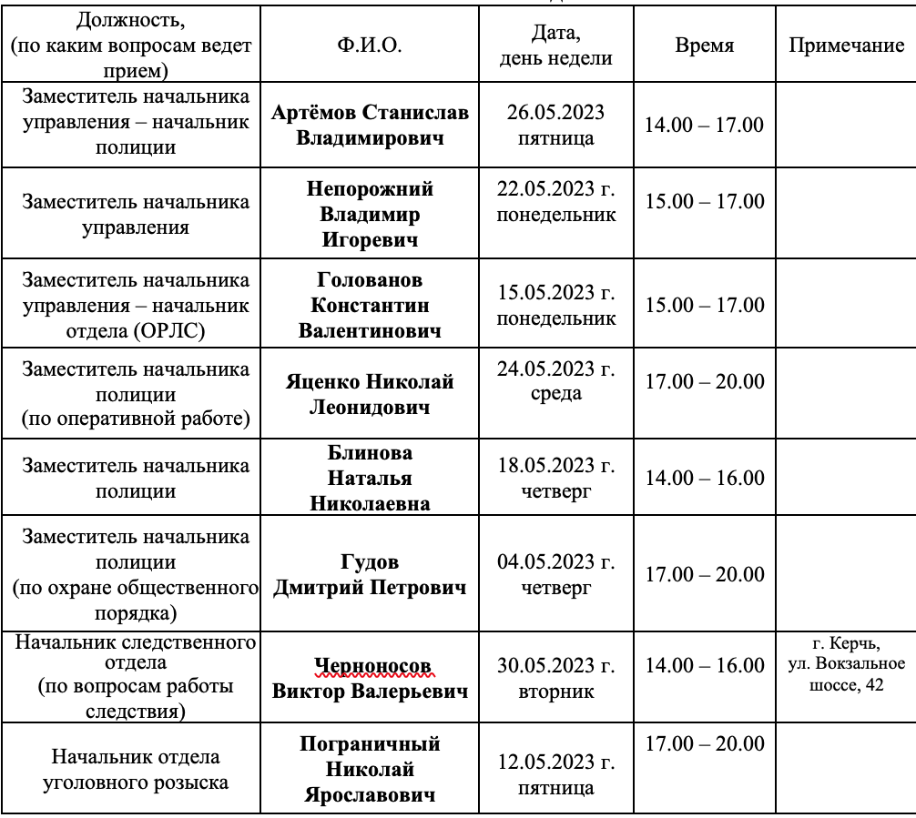 Керчанам сообщают график приема граждан руководящим составом Управления в мае 2023 года, - передает Керчь.ФМ.