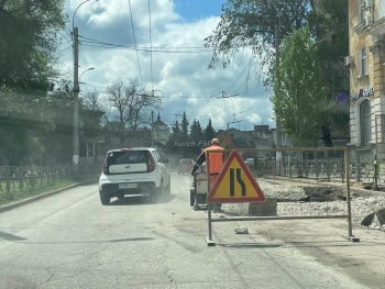 В Керчи с утра 10 мая на улице Свердлова идут работы на проезжей части, в месте где меняли водовод. Из-за этого часть полосы оградили еще сильнее.  Водители уже собираются в пробки, - передает  Керчь.ФМ.