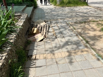 В Керчи на улице Курортной провалился тротуар после дождей. Но никто не спешит делать место безопасным для пешеходов, - передает Керчь.ФМ.