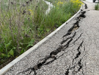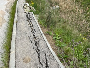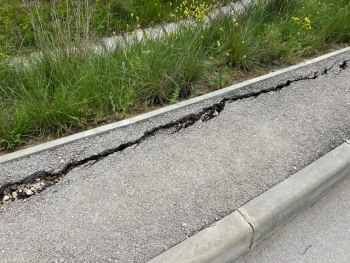 Сейчас тротуары начали трескаться, а в некоторых местах даже рушиться: обвалились бордюры и асфальт.