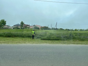 В Керчи на пустыре в районе Партизанского с утра 23 мая косят траву. Конечно, обещанных 50 косарей здесь не видно, но даже несколько рабочих уже радуют керчан, - передает  Керчь.ФМ.