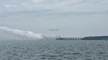 С утра 24 мая керчан напугал столб дыма над крымским мостом. Его видно с разных концов города, - передает Керчь.ФМ.